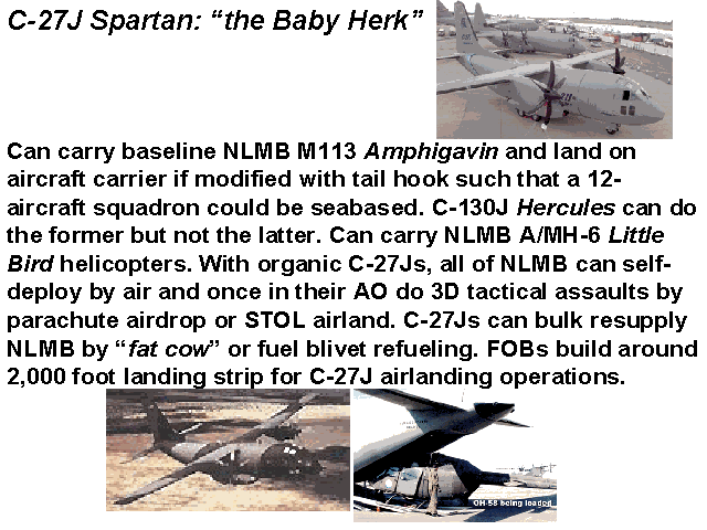 Like the CHINDITS, the NLMB will be capable of "Expeditionary Dispersed Operations" (EDOs) by their M113 Gavin tracks with bulldozers scraping out runways for their aircraft to land, followed by spraying Rhino Snot sealant to prevent "brown-outs" from causing crashes and keep dirt/sand out of engines and troop living areas.