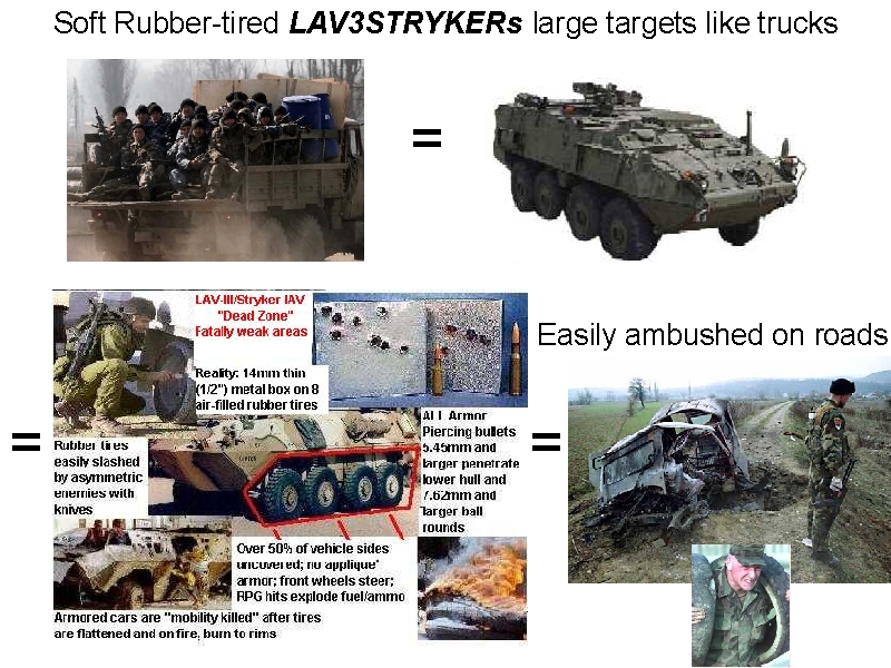 Wheeled Armored Cars like Stryker have their steering, suspension and drive trains exposed OUTSIDE of the thin armored box