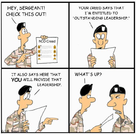 The sad fact is that the U.S. Army is currently on a 12-hour day treadmill that creates brain-dead robots and across-the-board mediocrity. Half the day is wasted doing sports PT and then the other half is wasted doing lawn care on BUILDINGS. You don't attack the "gates of hell" with buildings. Buildings are NOT weapon systems. We get up before the sun so we can brag that we do more than the average civilian but in actuality drag out 2 hours of work into a 12 plus hour day and wonder why when our Soldiers don't get the equired 6-10 hours of sleep a day that they are dying in motor vehicle accidents? We talk a lot about "taking care of Soldiers" and "accomplishing the mission" in excellent ideals like the NCO Creed but the daily reality proves otherwise.